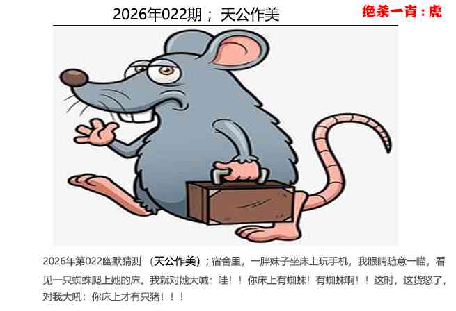 2026年第022幽默猜测(天公作美);宿舍里,一胖妹子坐床上玩手机,我眼睛随意一瞄,看见一只蜘蛛爬上她的床。我就对她大喊:哇!!你床上有蜘蛛!有蜘蛛啊!!这时,这货怒了